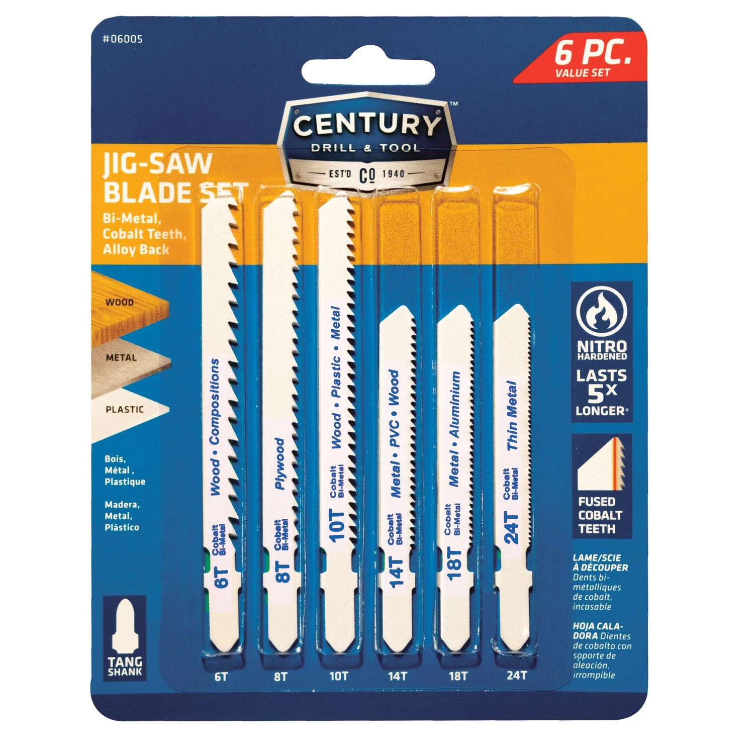 Century Drill & Tool 4 In. Bi-Metal T-Shank Jig Saw Blade Set 24 TPI 6 Pk