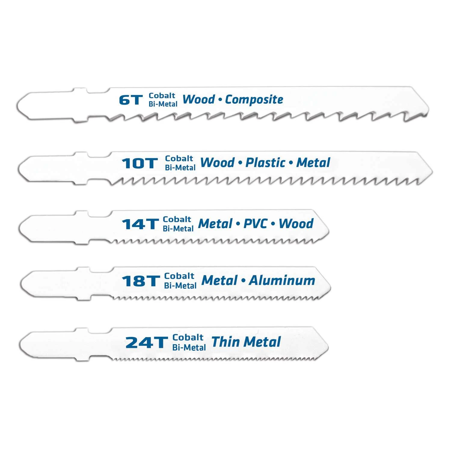 | What's Included | 6 piece set includes 6T 8T10T 14T 18T and 24T bi-metal tang shank jig saw blades |