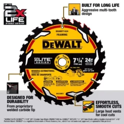DeWalt Elite Series 7-1/4 In. D X 5/8 In. Carbide Circular Saw Blade 24 Teeth 1 Pk