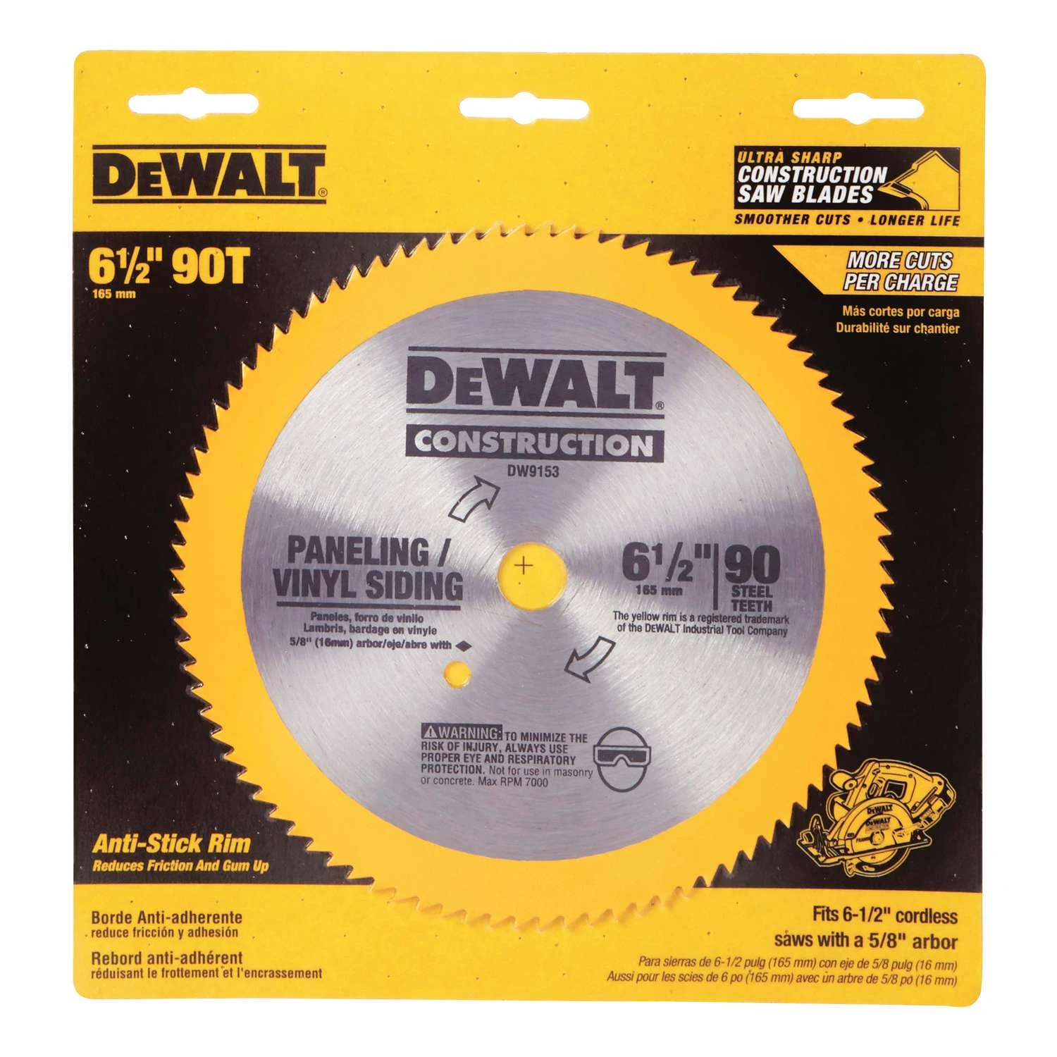 DeWalt 6-1/2 In. D X 5/8 In. Construction Steel Circular Saw Blade 90 Teeth 1 Pk