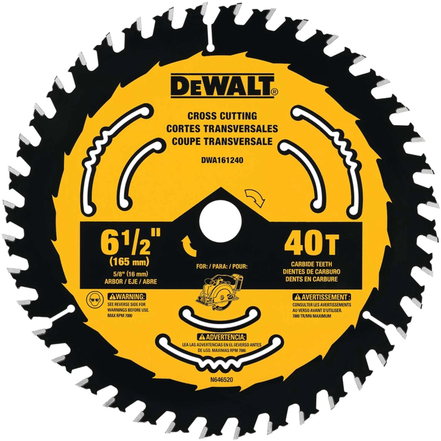 DeWalt 6-1/2 In. D X 5/8 In. Tungsten Carbide Circular Saw Blade 40 Teeth 1 Pk
