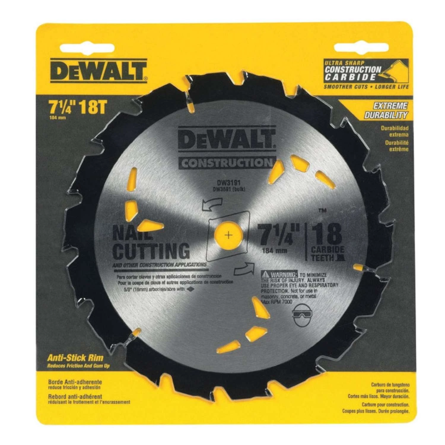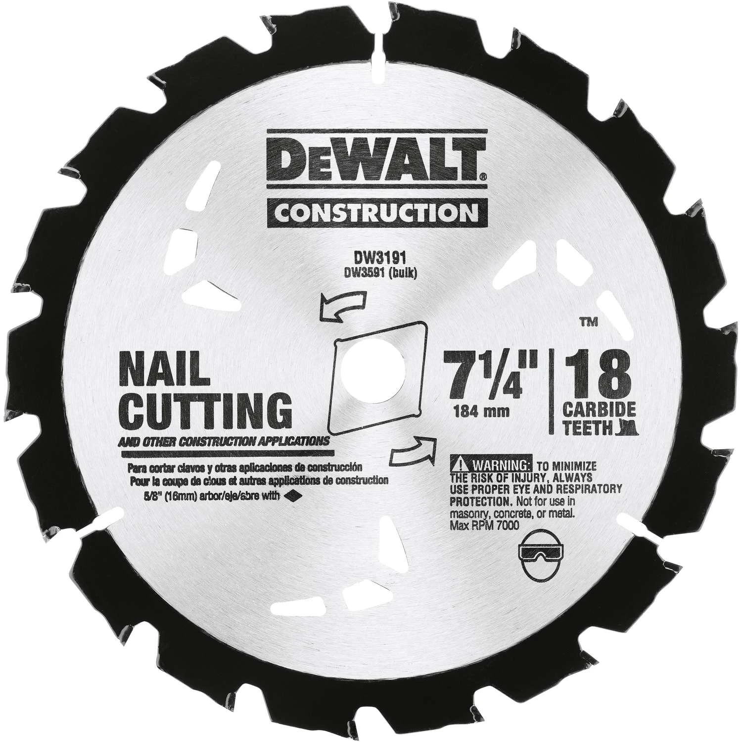 DeWalt 7-1/4 In. D X 5/8 In. Construction Carbide Circular Saw Blade 18 Teeth 1 Pk