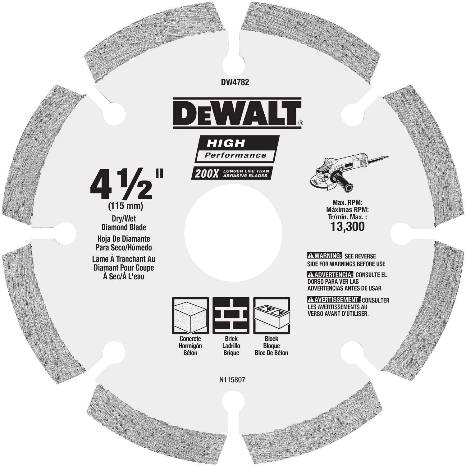 DeWalt HP 4-1/2 In. D X 7/8 In. Diamond Segmented Rim Diamond Saw Blade 1 Pk