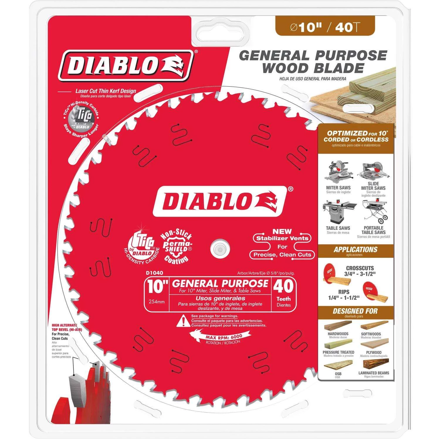Diablo 10 In. D X 5/8 In. TiCo Hi-Density Carbide Circular Saw Blade 40 Teeth 1 Pk
