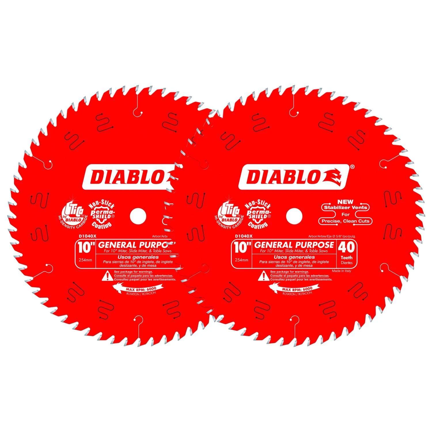 Diablo 10 In. D X 5/8 In. TiCo Hi-Density Carbide Circular Saw Blade Set 40 Teeth 2 Pk