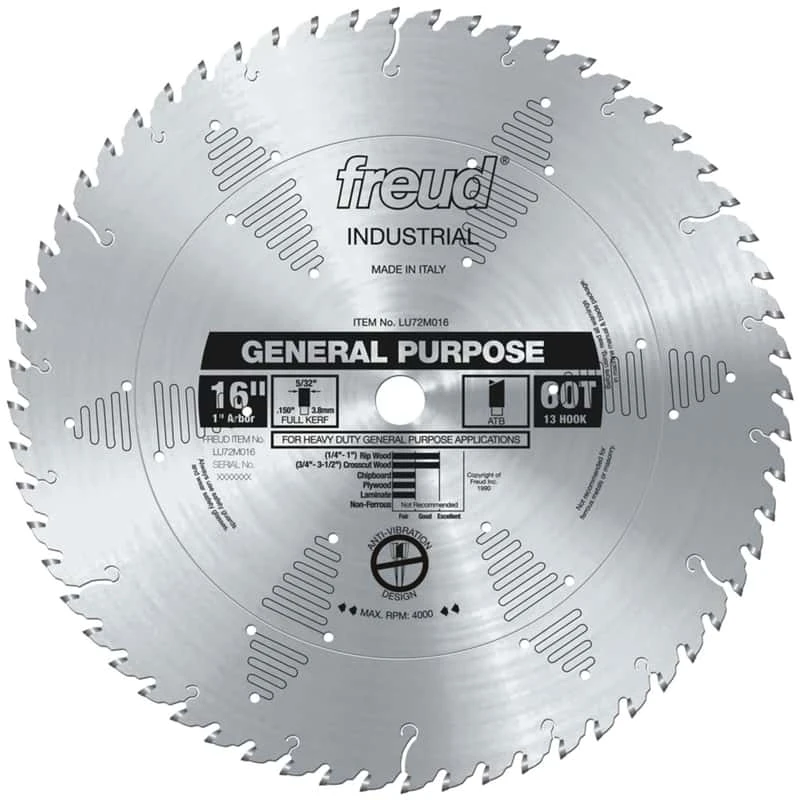 Freud 16 In. D X 1 In. General Purpose TiCo Hi-Density Carbide Circular Saw Blade 60 Teeth 1 Pk
