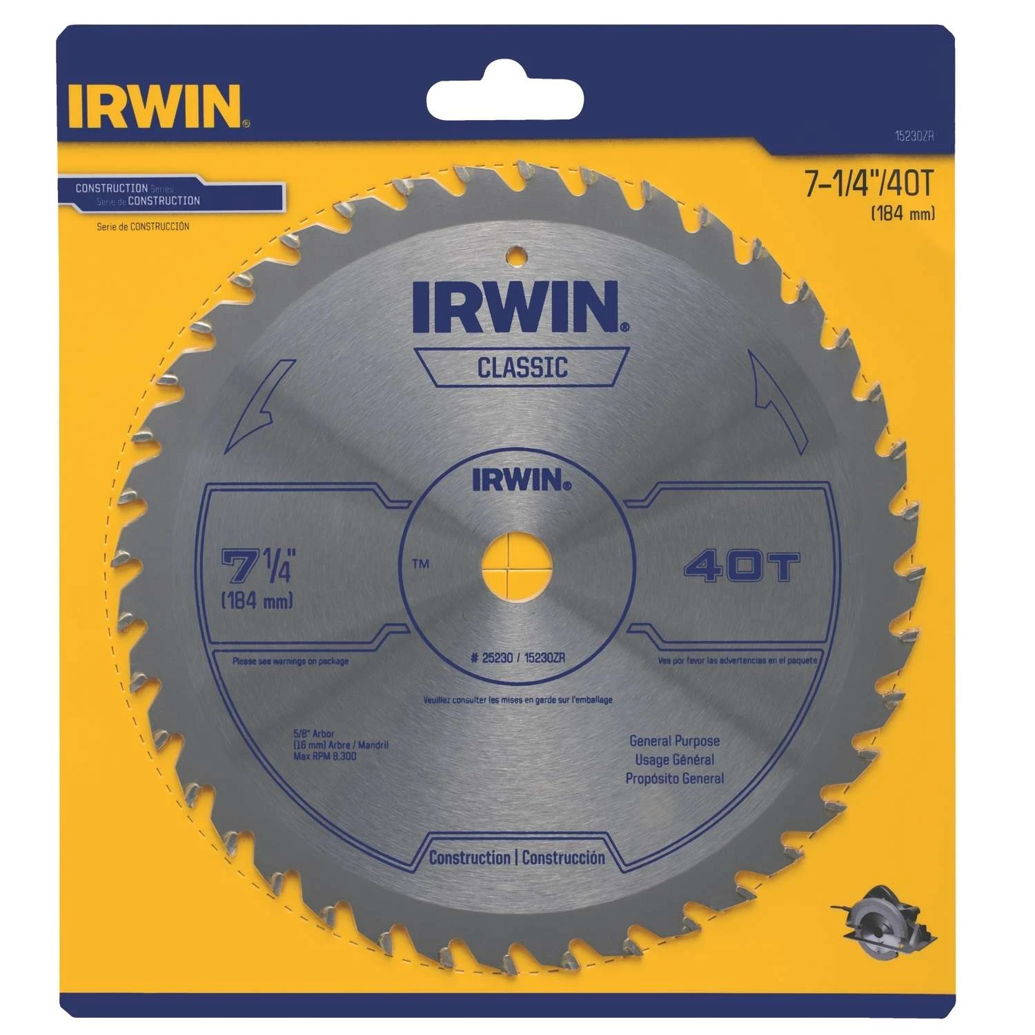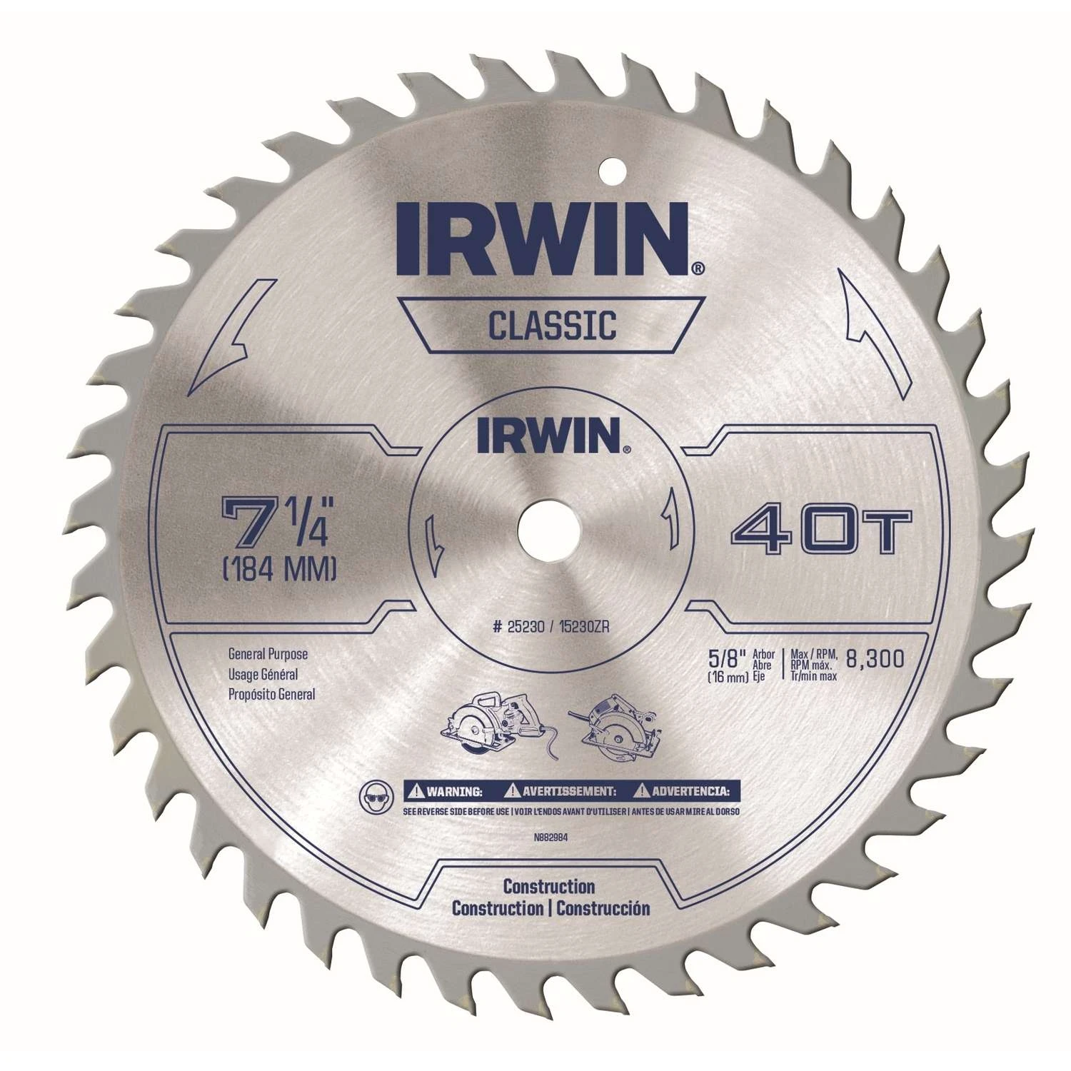 Irwin 7-1/4 In. D X 5/8 In. Classic Carbide Circular Saw Blade 40 Teeth 1 Pk