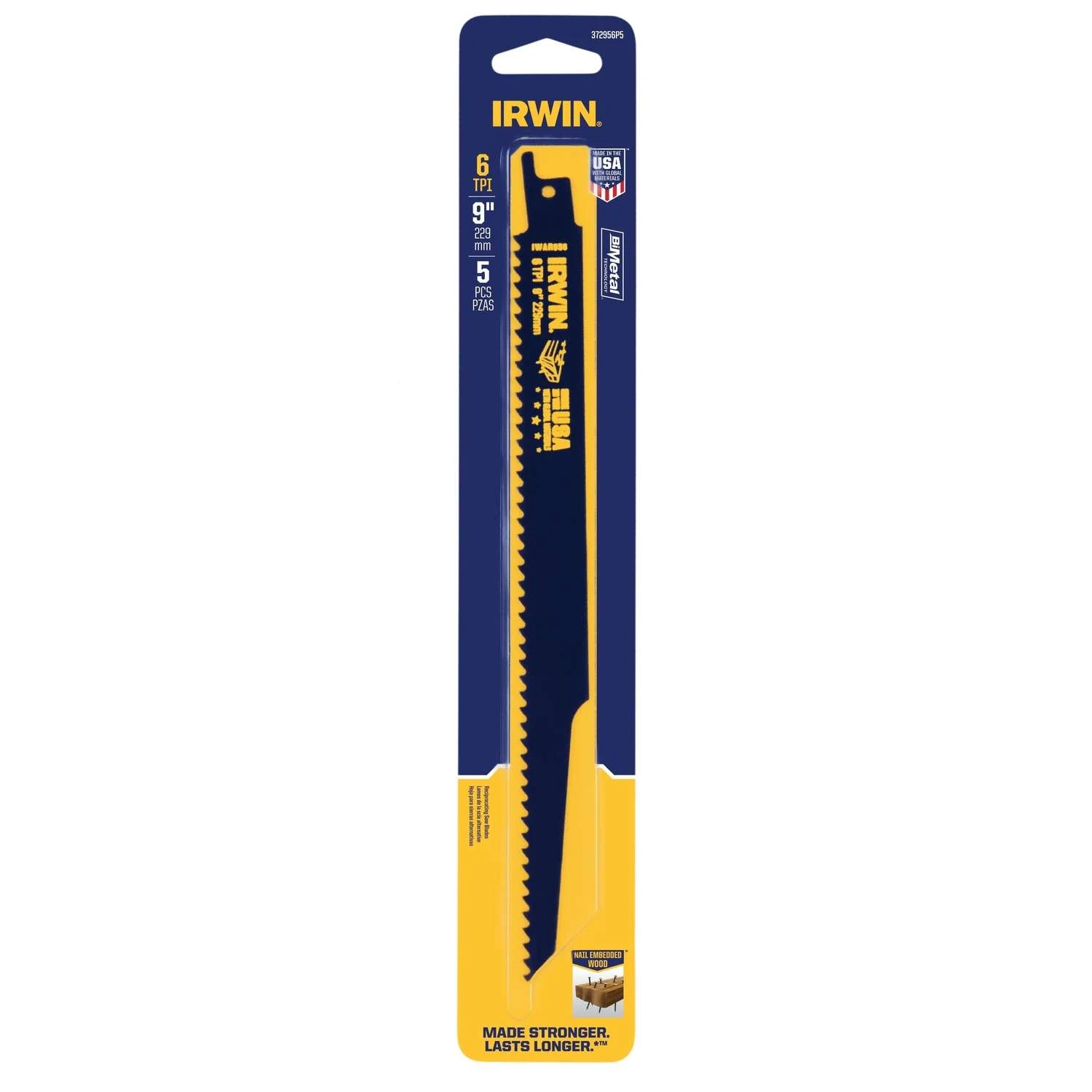 Irwin 9 In. Bi-Metal Reciprocating Saw Blade 6 TPI 5 Pc