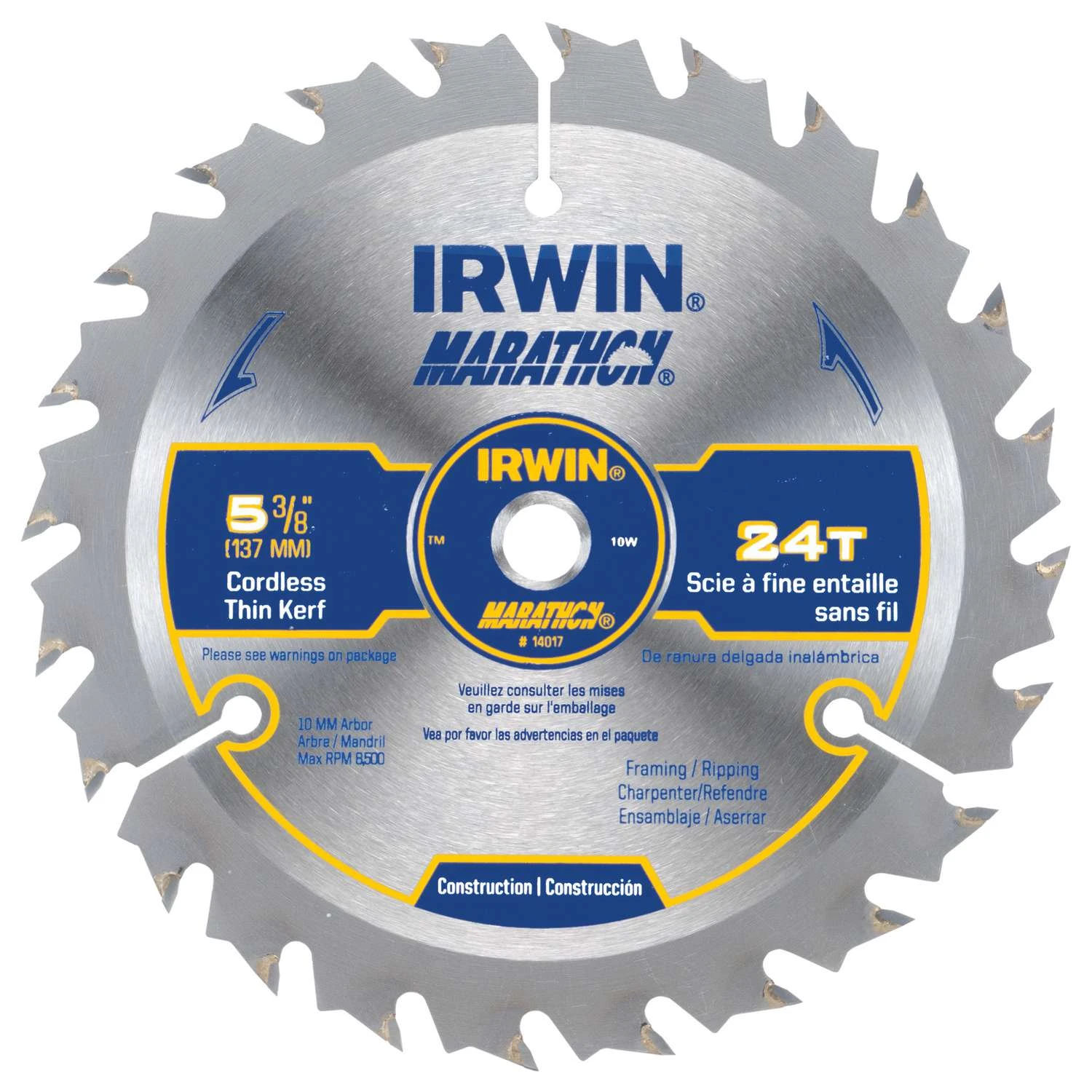 Be the first to review “Irwin Marathon 5-3/8 In. D X 10 Mm Carbide Circular Saw Blade 24 Teeth 1 Pk” Cancel reply