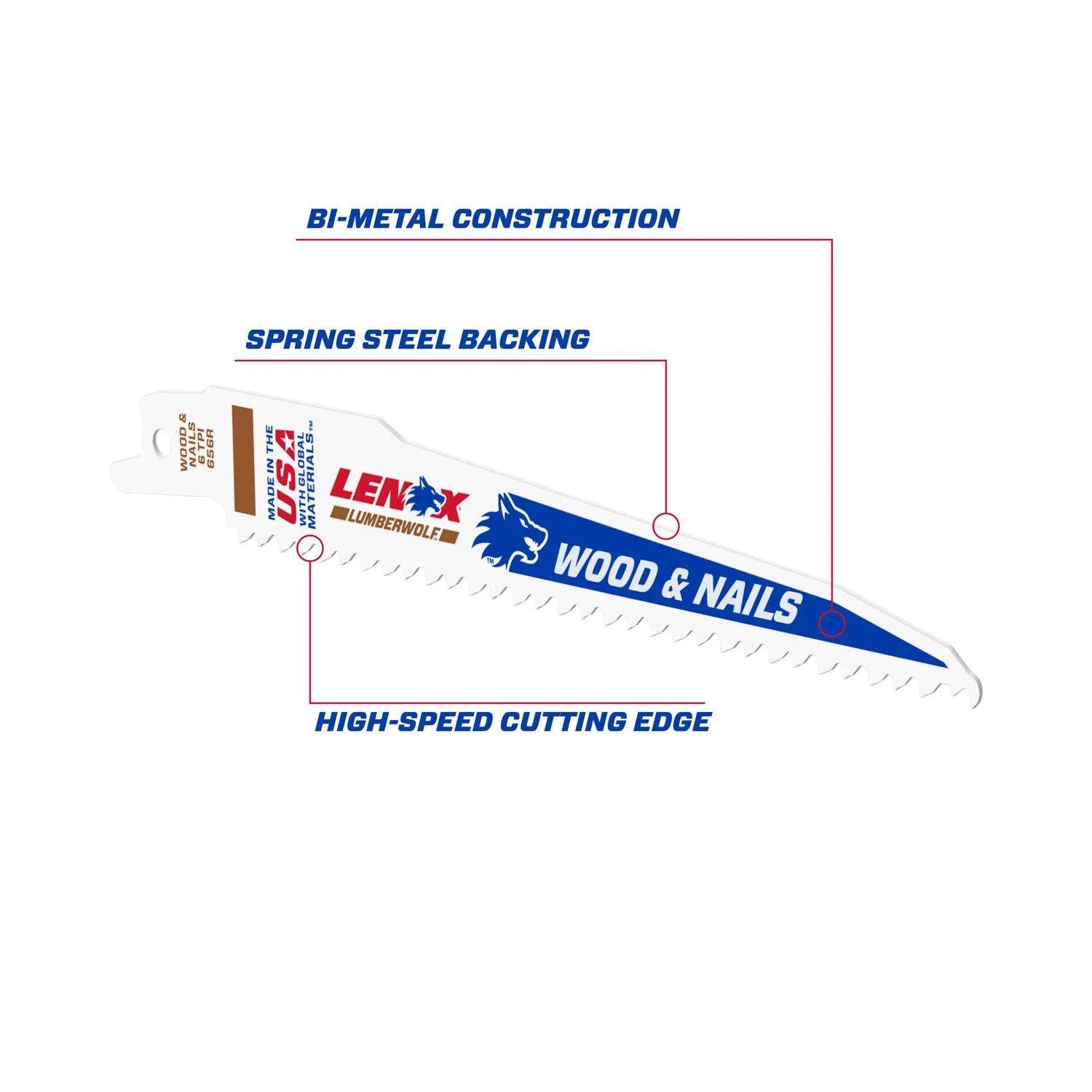 LENOX LUMBERWOLF 6 In. Bi-Metal Reciprocating Saw Blade 6 TPI 25 Pk