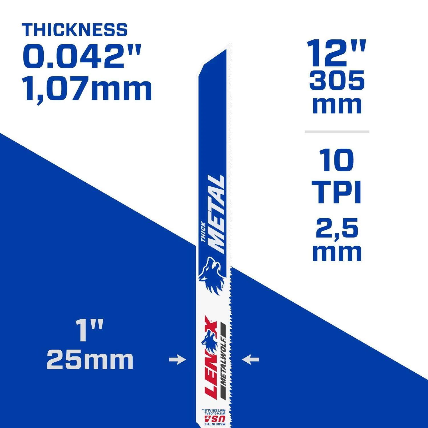 LENOX METALWOLF 12 In. Bi-Metal WAVE EDGE Reciprocating Saw Blade 10 TPI 5 Pk