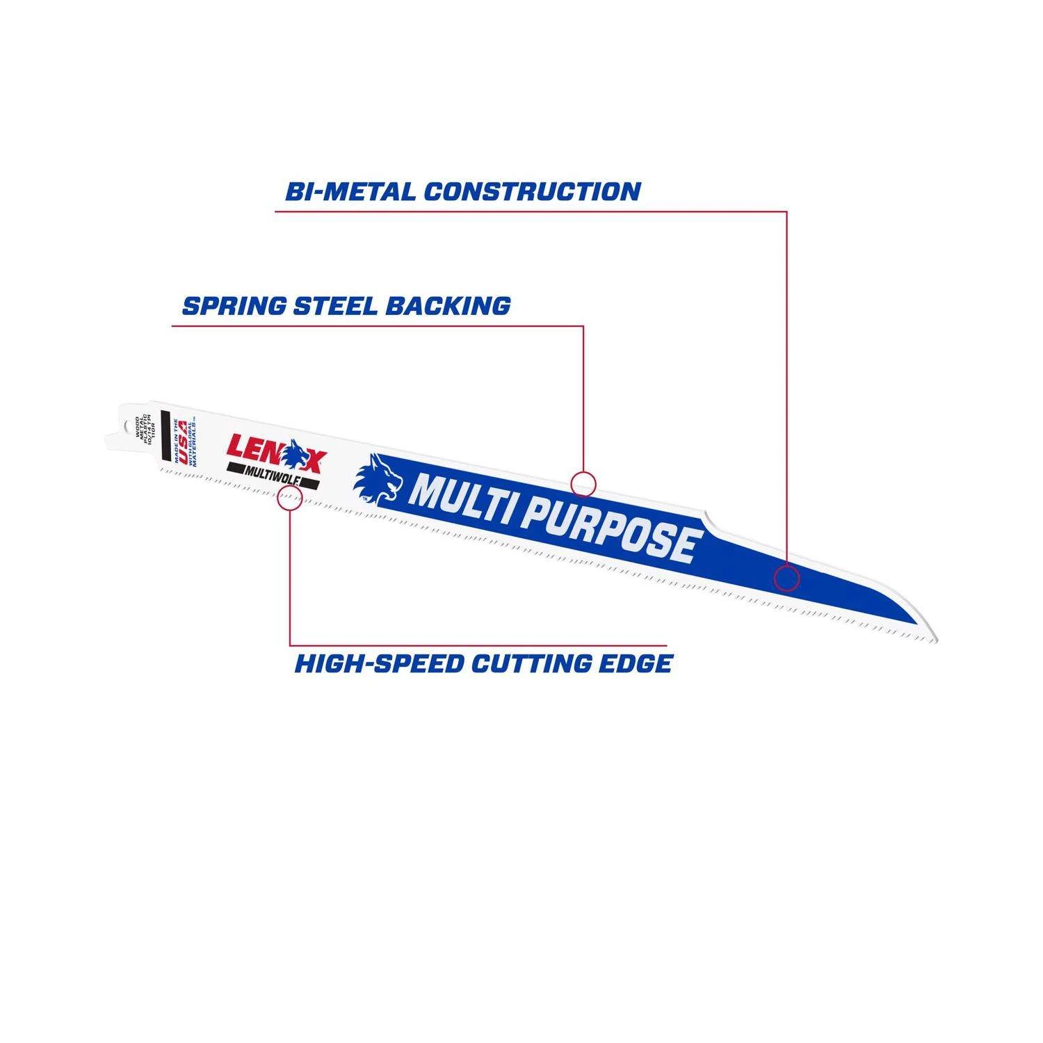 LENOX MULTIWOLF 8 In. Bi-Metal WAVE EDGE Reciprocating Saw Blade 10 TPI 5 Pk
