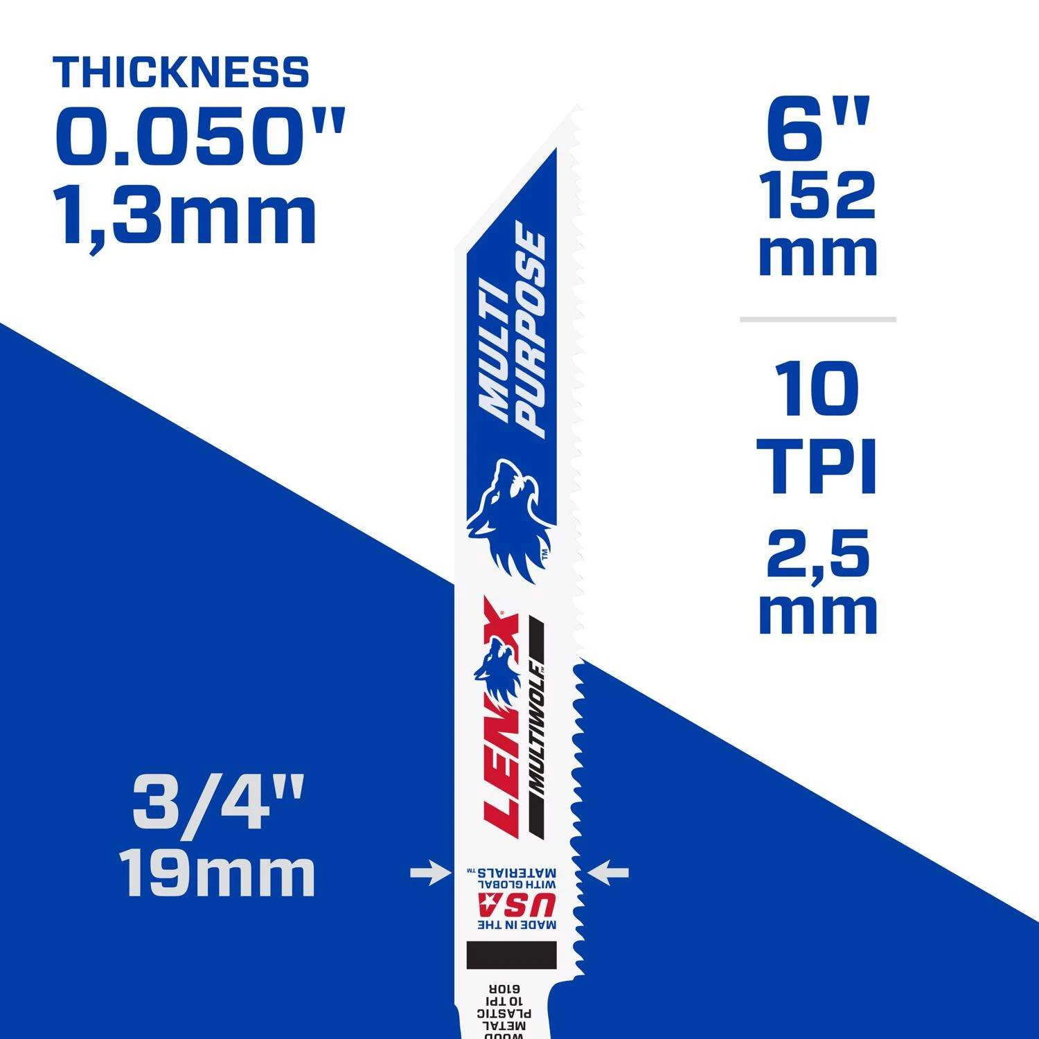 LENOX MULTIWOLF 6 In. Bi-Metal WAVE EDGE Reciprocating Saw Blade 10 TPI 5 Pk